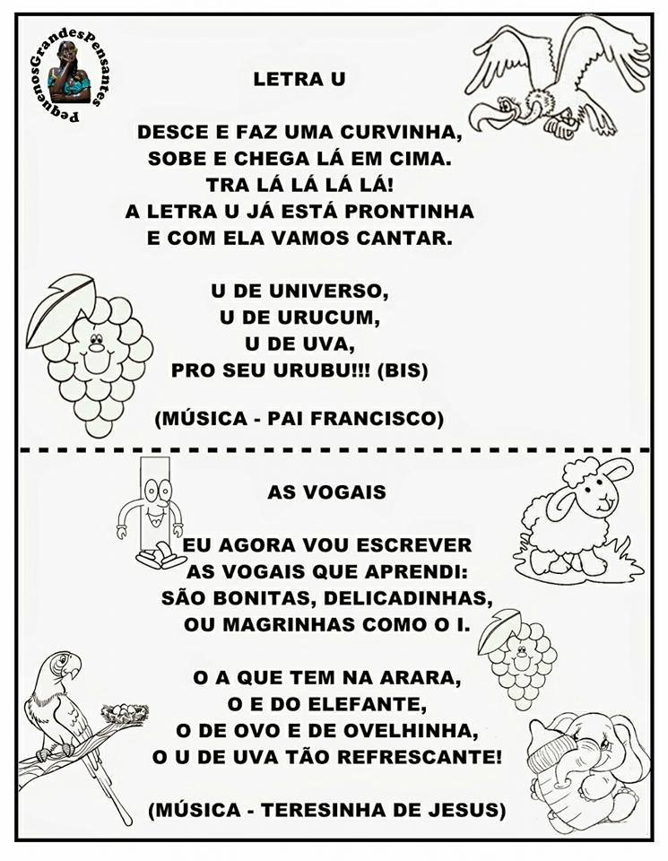Confira nesta postagem algumas Atividades com Vogais cantadas, prontas para imprimir e aplicar em alunos das series iniciais.