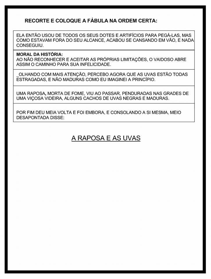 Atividades com a fábula A raposa e as uvas