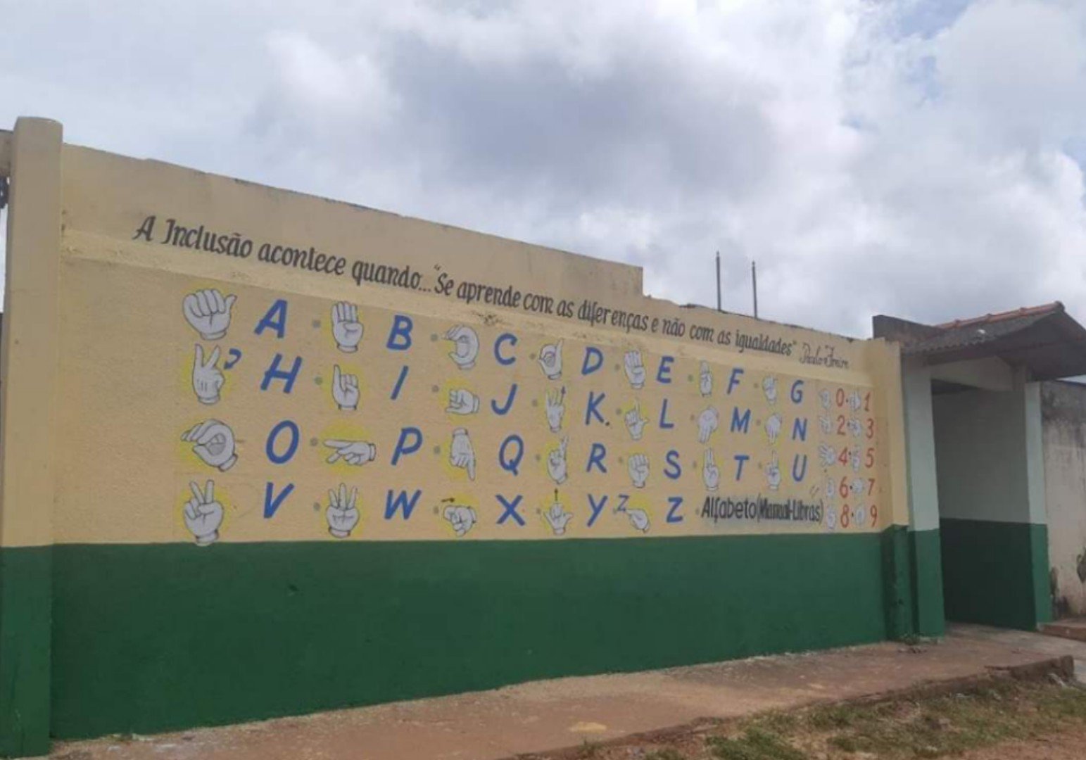 Muro da escola José de Alencar estimula a inclusão de surdos através da pintura do alfabeto de Libras