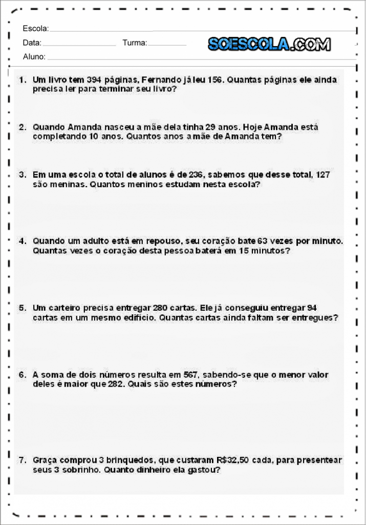 Excelentes sugestões de Problemas de Divisão e Multiplicação para imprimir e aplicar em seus alunos das series iniciais em sala de aula ou como tarefa para casa.