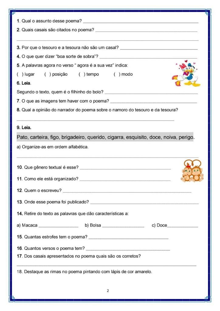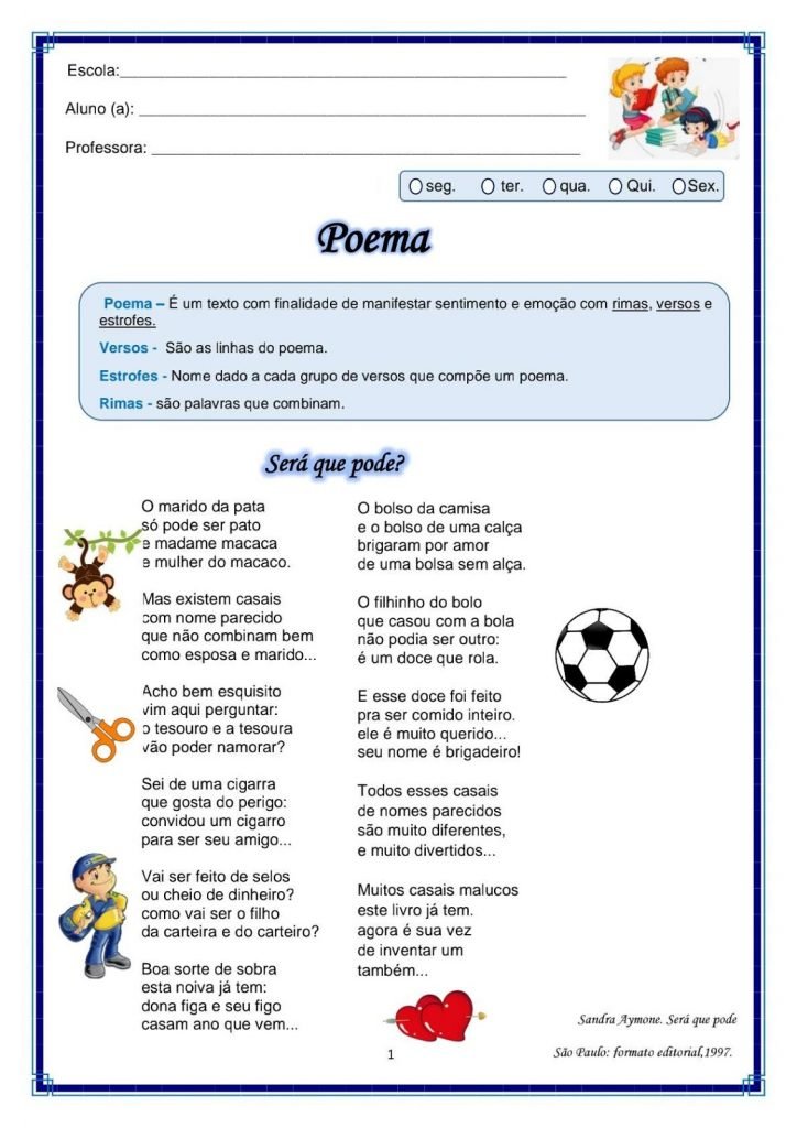 Confira estas Atividades de Leitura e Compreensão com Gramática trabalhando o gênero textual poema em sala de aula ou como tarefa para casa.