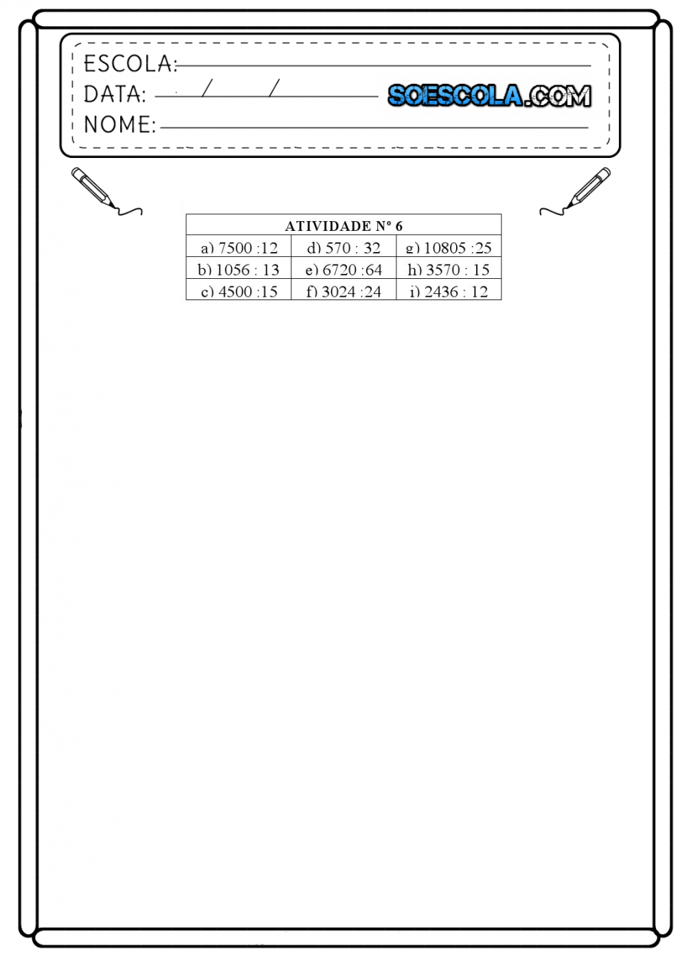 Atividades com 72 Continha de Divisão para imprimir – Folha 06