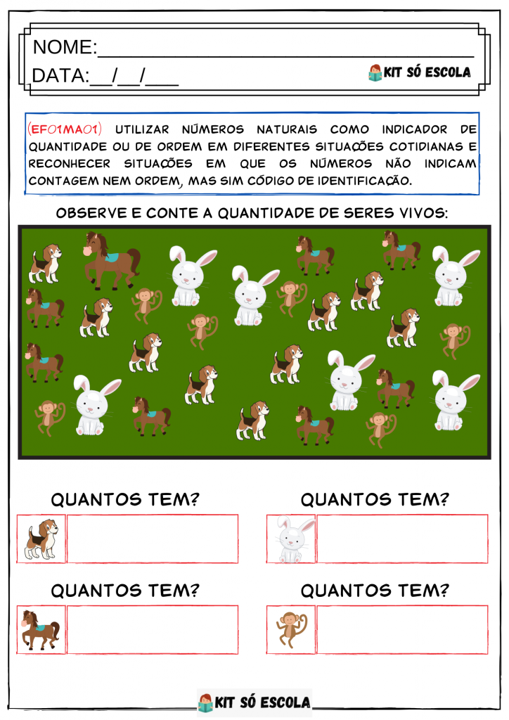 KIT ATIVIDADES MATEMÁTICA 1° ANO BNCC