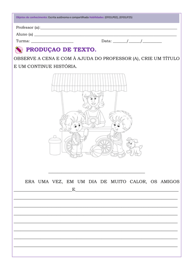 5 Atividades de Produção de Texto 1 ano (BNCC) – Para imprimir